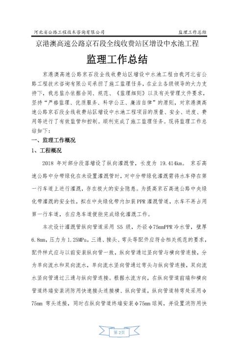 全線收費(fèi)站區(qū) 增設(shè)中水池工程監(jiān)理報(bào)告