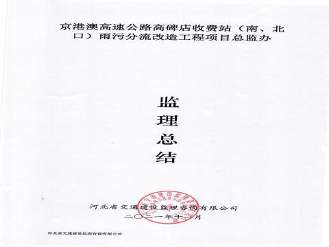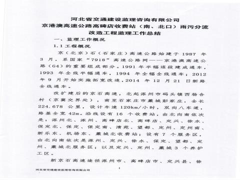 京港澳高速公路高碑店收費(fèi)站(南、北口)雨污分流改造工程監(jiān)理工作總結(jié)