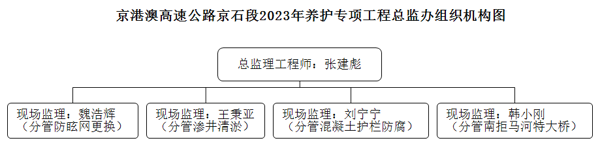 京港澳高速公路京石段2023年養(yǎng)護(hù)專項(xiàng)工程總監(jiān)辦組織機(jī)構(gòu)圖