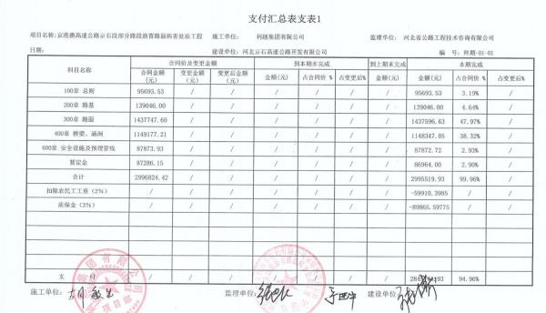 京港澳高速公路京石段部分瀝青路面病害處治工程支付證書(shū)