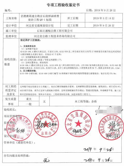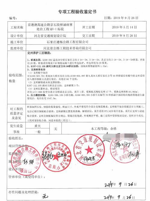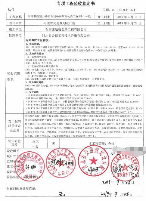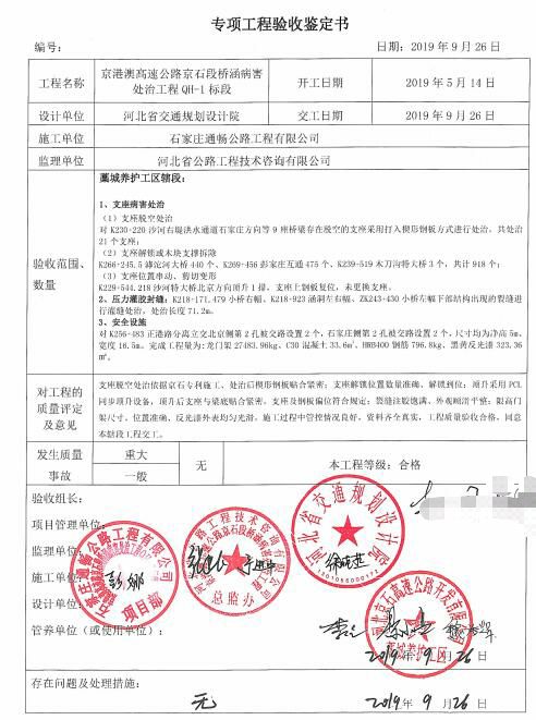 京港澳高速公路京石段橋涵病害處治工程QH-1標(biāo)段工程專項(xiàng)鑒定書