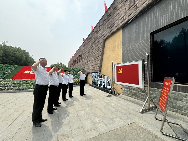抵達冉莊地道戰(zhàn)紀念館后,黨員們面對鮮紅的黨旗,黨員們高舉右拳,重溫入黨誓詞?!拔抑驹讣尤胫袊伯a(chǎn)黨…… 隨時準備為黨和人民犧牲一切,永不叛黨?!?鏗鏘有力的誓言在廣場上空回蕩,每一位黨員的心靈都受到了強烈震撼,更加堅定了為共產(chǎn)主義事業(yè)奮斗終身的理想信念。