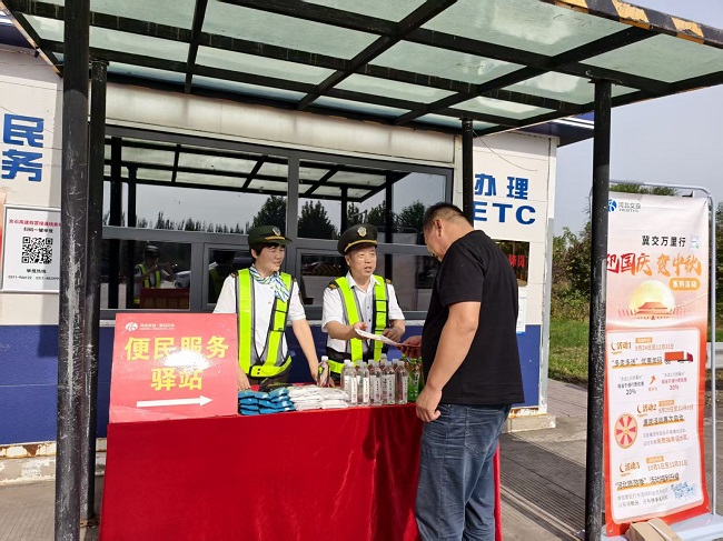 雙節(jié)期間,收費站在廣場醒目位置設立“黨員先鋒崗”和“便民服務臺”,為司乘人員提供“一站式”暖心服務。常備的熱水、急救藥品、充電設備、修車工具等物資一應俱全,志愿者主動上前詢問司乘需求,幫助更換輪胎、搭電啟動、規(guī)劃最優(yōu)路線,累計服務過往車輛20余輛次,解決各類突發(fā)問題6起。這份“急司乘之所急”的服務理念,使收費站成為了司乘旅途中的“暖心港灣”。