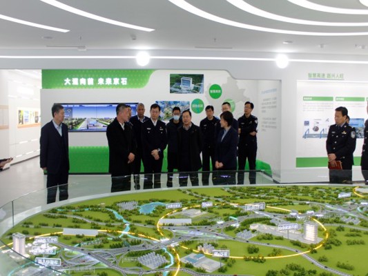 秦學軍一行參觀了京石公司智慧調(diào)度中心監(jiān)控大廳,詳細了解了京石路警聯(lián)合指揮中心運行情況,對京石公司在智慧交通建設(shè)方面取得的成果高度評價,并對路警高效協(xié)同、快速處置突發(fā)事件的能力表示贊賞。