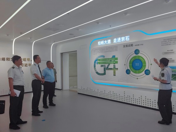 朱斌一行首先參觀了京石公司智慧調(diào)度大廳,深入了解了路警聯(lián)合運行機制流程,實地觀摩了智慧監(jiān)控、應急調(diào)度、數(shù)據(jù)研判等功能模塊的協(xié)同運作。隨后前往企業(yè)展廳,系統(tǒng)了解了京石公司的發(fā)展藍圖、企業(yè)文化,及近年來在創(chuàng)新創(chuàng)效和科技研發(fā)領域取得的豐碩成果。