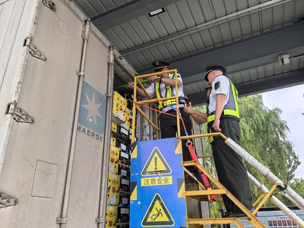 為直觀檢驗(yàn)設(shè)備性能,宋罡在工作人員的操作演示下,全程觀察長桿式綠通檢驗(yàn)儀針對多輛不同類型綠通車的檢測過程。當(dāng)看到設(shè)備精準(zhǔn)捕捉車廂內(nèi)貨物細(xì)節(jié)、快速完成查驗(yàn)判斷后,他對新設(shè)備的實(shí)際應(yīng)用效果予以認(rèn)可,并提出工作要求,高碑店站要進(jìn)一步開放“京石桿”的試用工作,在實(shí)際使用過程中積累數(shù)據(jù)與試用經(jīng)驗(yàn),為“京石桿”的進(jìn)一步優(yōu)化提供改進(jìn)建議。同時(shí),在實(shí)際使用過程中積累數(shù)據(jù)與試用經(jīng)驗(yàn),熟練掌握設(shè)備操作技巧,充分發(fā)揮新設(shè)備的技術(shù)優(yōu)勢,持續(xù)提升綠通查驗(yàn)效率與準(zhǔn)確性,切實(shí)保障綠通政策精準(zhǔn)落實(shí)。