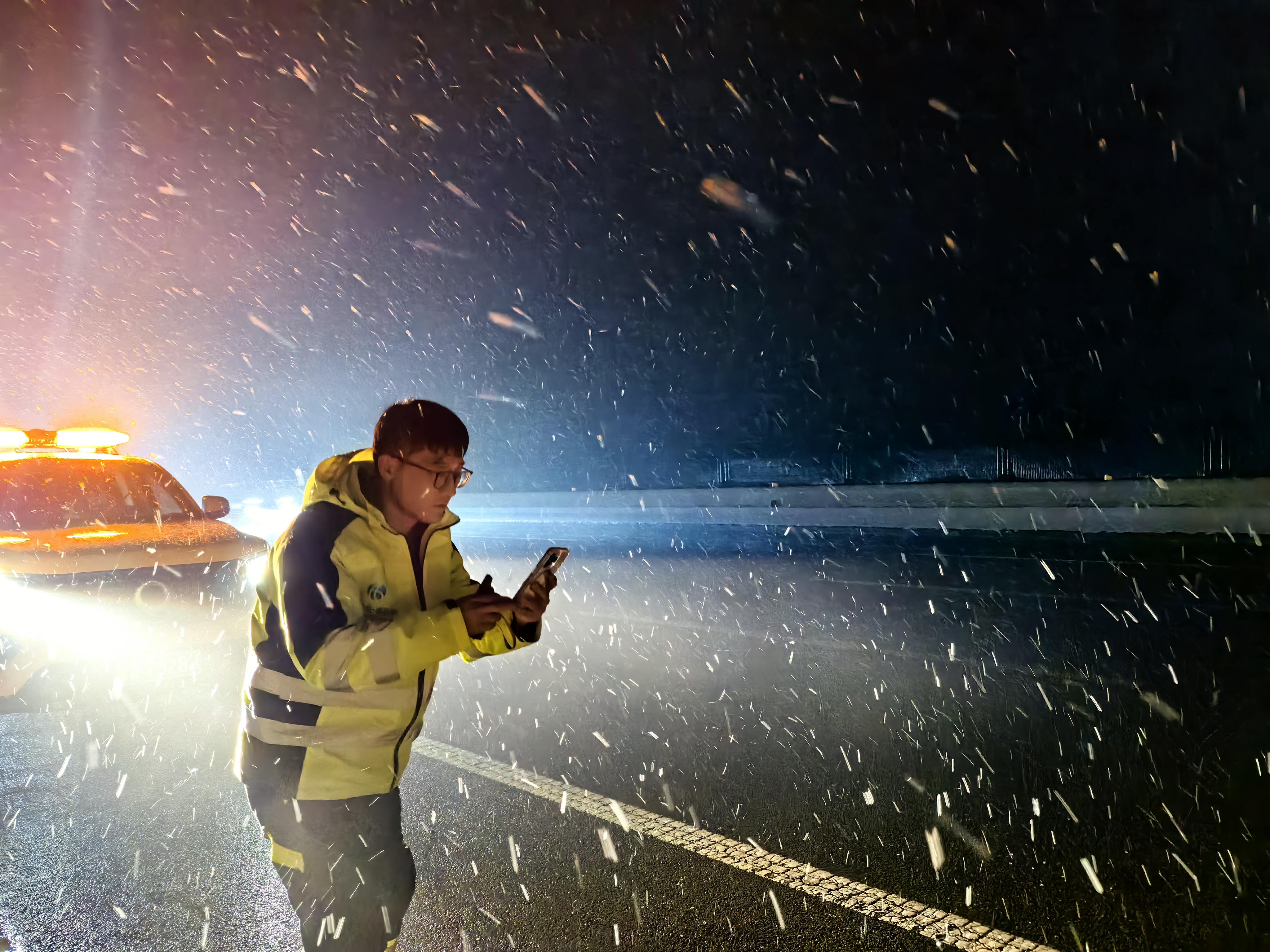 晚19時(shí)左右,紛紛揚(yáng)揚(yáng)的雪花如期而至,身穿熒光綠防護(hù)服的養(yǎng)護(hù)員工分成6個(gè)保暢小組,冒著風(fēng)雪精神抖擻地奔赴崗位。工區(qū)主任張建彬周密部署、掛圖作戰(zhàn)、靠前指揮,工區(qū)副主任魏曉輝、魏浩輝按照分工相互協(xié)作,根據(jù)降雪量、沿途撒布情況隨時(shí)調(diào)整方案和調(diào)配人員設(shè)備。
