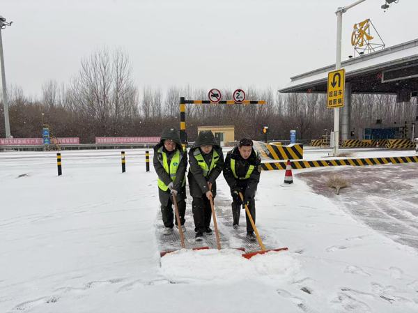 接到降雪預(yù)警后,涿州收費(fèi)站提前備足物資,科學(xué)調(diào)配人員。降雪發(fā)生后,全體在崗職工立即投入清雪工作,重點(diǎn)對收費(fèi)廣場、車道等區(qū)域進(jìn)行清掃,為后續(xù)安全通行創(chuàng)造條件。