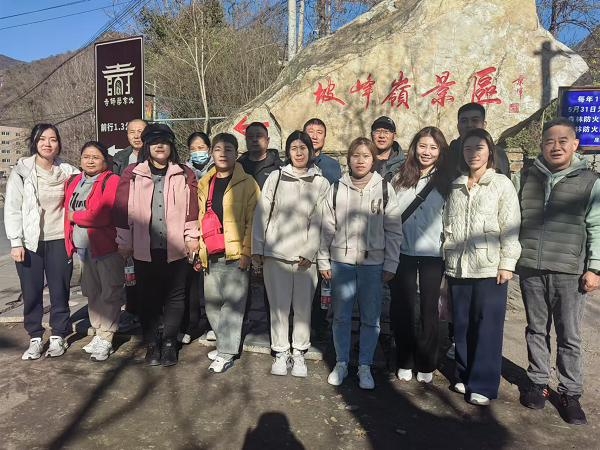 秋日的陽(yáng)光灑在身上,每位員工的臉上都洋溢著興奮與期待。坡峰嶺那漫山遍野的紅葉像是大自然打翻的調(diào)色盤,遠(yuǎn)遠(yuǎn)望去,紅的似火,黃的如金,層林盡染,美不勝收。