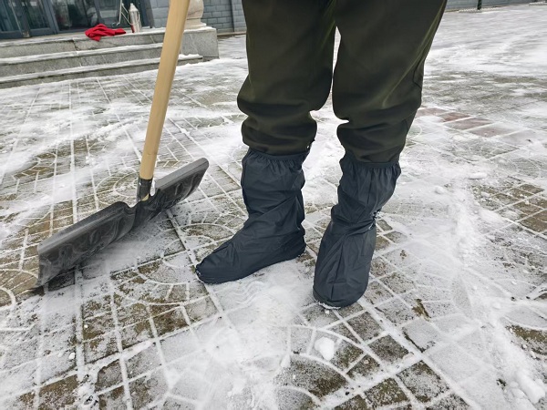 此次采購的鞋套兼具防水、防滑、耐磨特性,能夠有效應(yīng)對積雪、結(jié)冰路面,避免員工在戶外作業(yè)時滑倒受傷。發(fā)放現(xiàn)場,分工會工作人員有序組織,員工們領(lǐng)到鞋套后紛紛當(dāng)場換上,隨即投身到車道除雪保暢工作中。皚皚白雪里,身著反光背心、腳踩防水鞋套的員工們手持鐵鍬、雪推板,分工協(xié)作、干勁十足,全力清掃車道內(nèi)的積雪。防滑鞋套讓大家在濕滑的路面上行動自如,大大提升了除雪效率,原本被積雪覆蓋的車道很快便恢復(fù)了暢通。