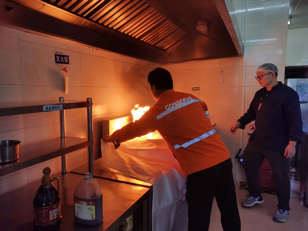 實操環(huán)節(jié)中,安全員針對三類器材的使用場景與操作要點開展精準教學(xué)。在防毒防煙面具使用模塊,重點演示了濾毒罐密封性檢查、頭帶松緊調(diào)節(jié)及氣密測試技巧,指導(dǎo)員工通過“負壓測試”確保佩戴合格,掌握“深慢呼吸、小步移動”的逃生要領(lǐng)。滅火毯實操現(xiàn)場,手把手傳授“握角抖開、上風(fēng)向覆蓋、邊緣壓實”的規(guī)范動作,明確油鍋等初期火災(zāi)需覆蓋15分鐘以上的處置標準,杜絕復(fù)燃風(fēng)險。